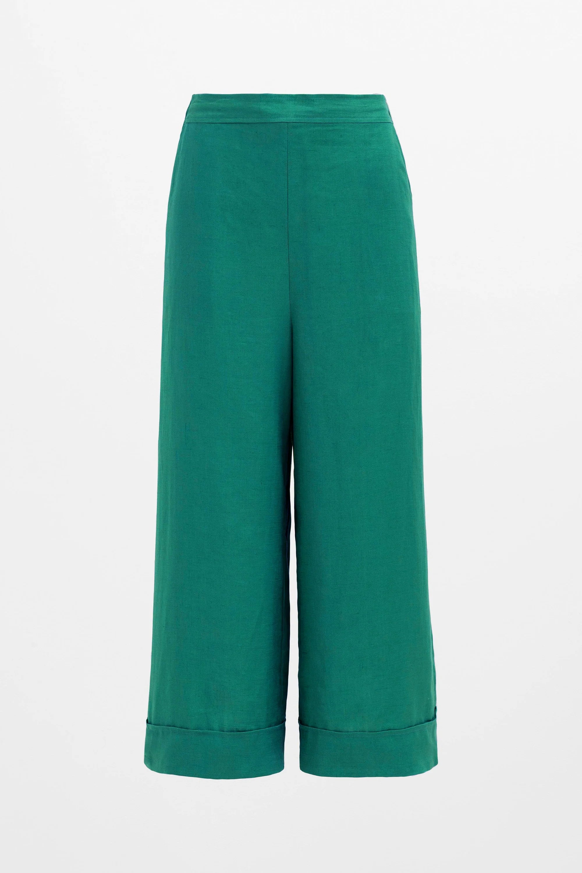 Tumbling Flowers Green Linen Tablecloth Rectangular