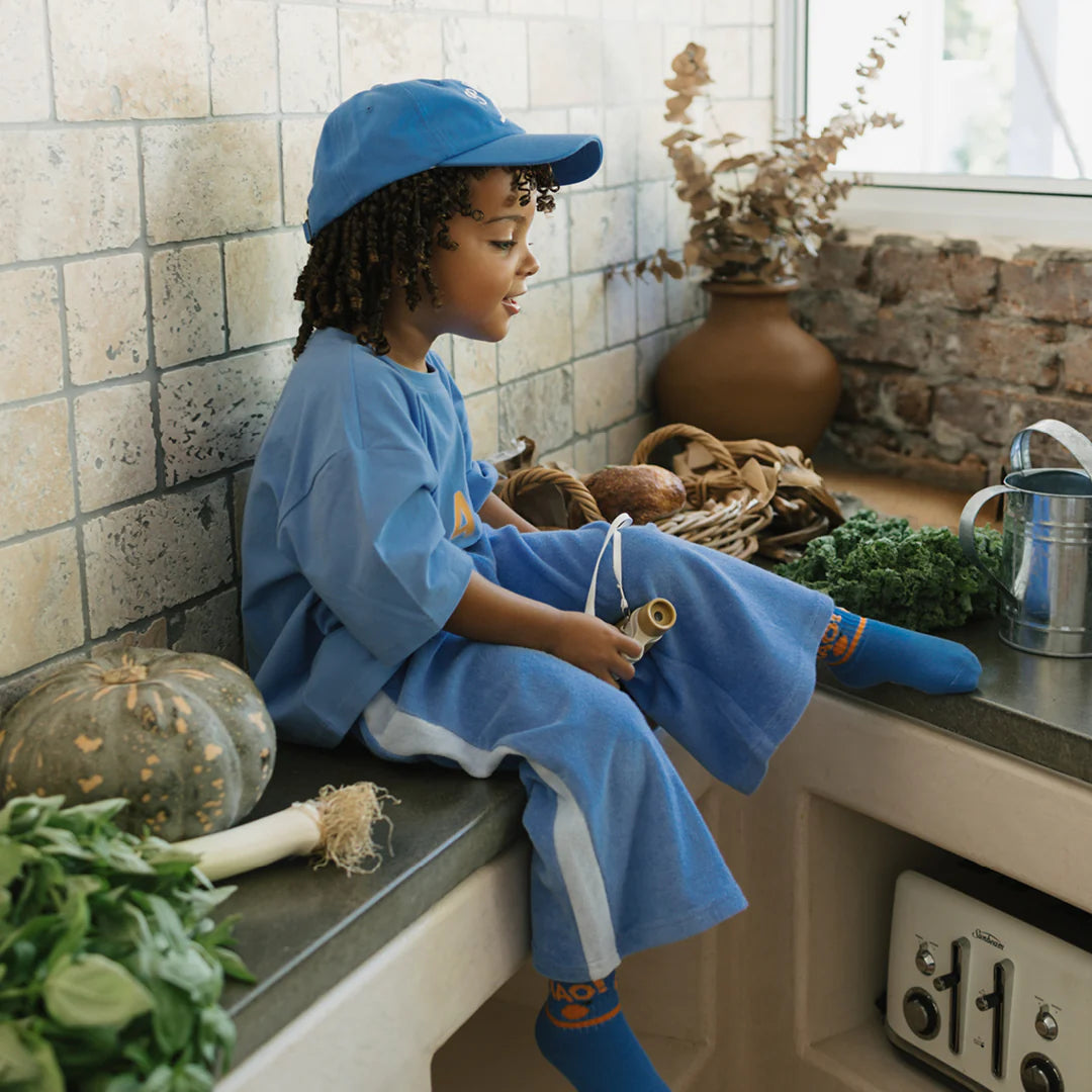Inspired by Italian adventures, the playful "Ciao" print captures the effortless joy of greeting the world with a smile. Pair it effortlessly with the Ciao Tutti wide-leg pants in pool blue for a coordinated, laid-back look.