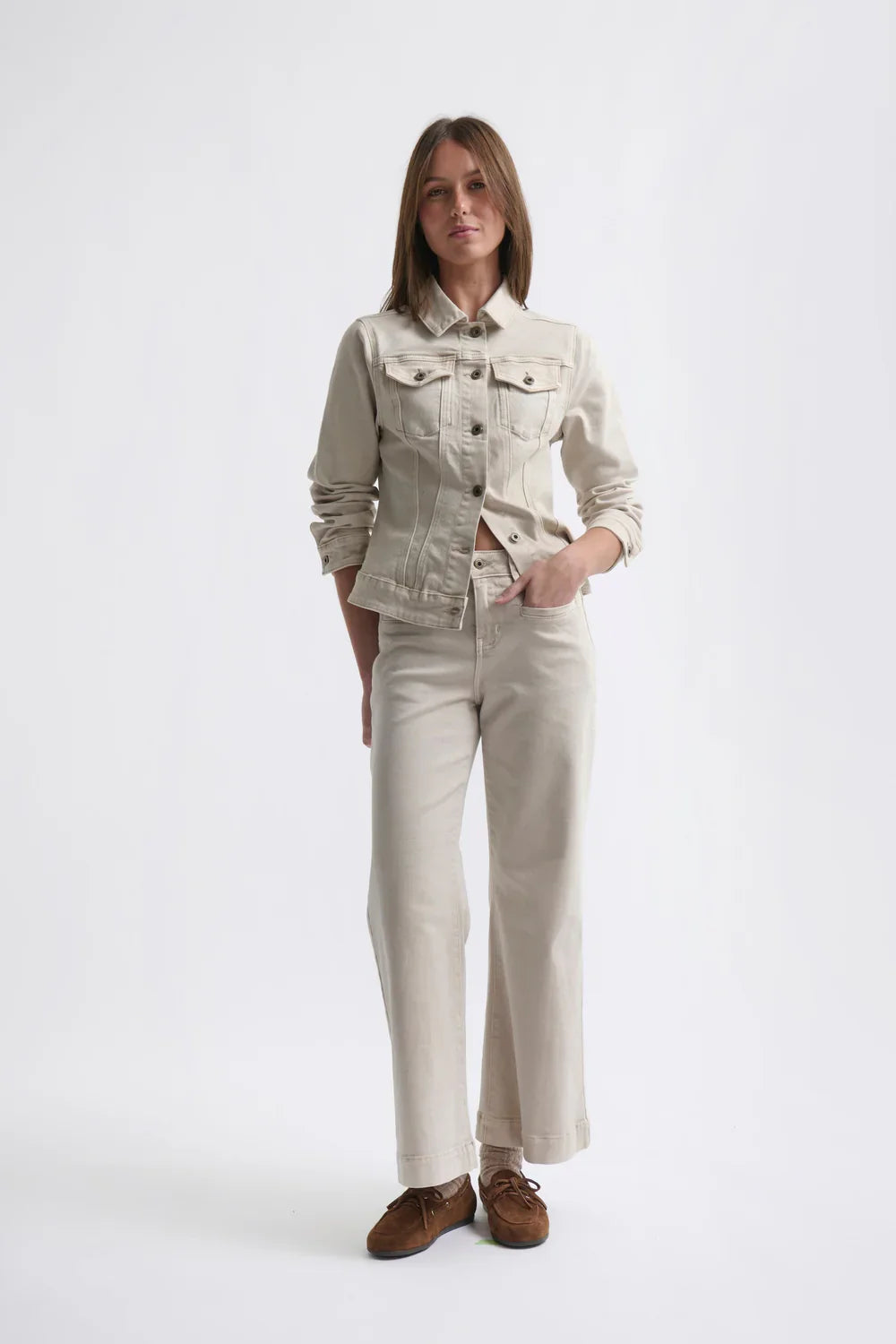 The Freya Jean by Kireina channels effortless 70s-inspired style with a modern, flattering silhouette. Designed with a mid-to-high rise, this wide-leg jean is fitted through the hips before falling into a relaxed leg that subtly flares from the knee, creating a timeless and elongating shape.