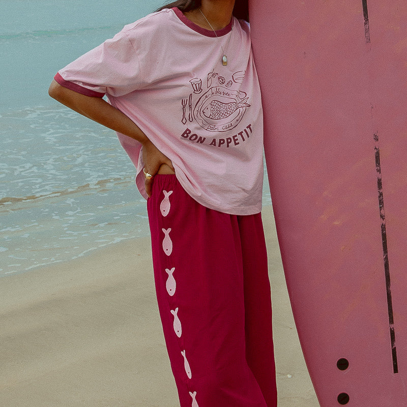 Rooted in the values of sustainability and slow fashion, our collections feature timeless staples crafted from eco-conscious fabrics such as Ecovero™, Econyl®, rayon, and linen. Every print is thoughtfully designed in-house and exclusive to Palm Collective clothing, giving each piece its own distinctive charm.