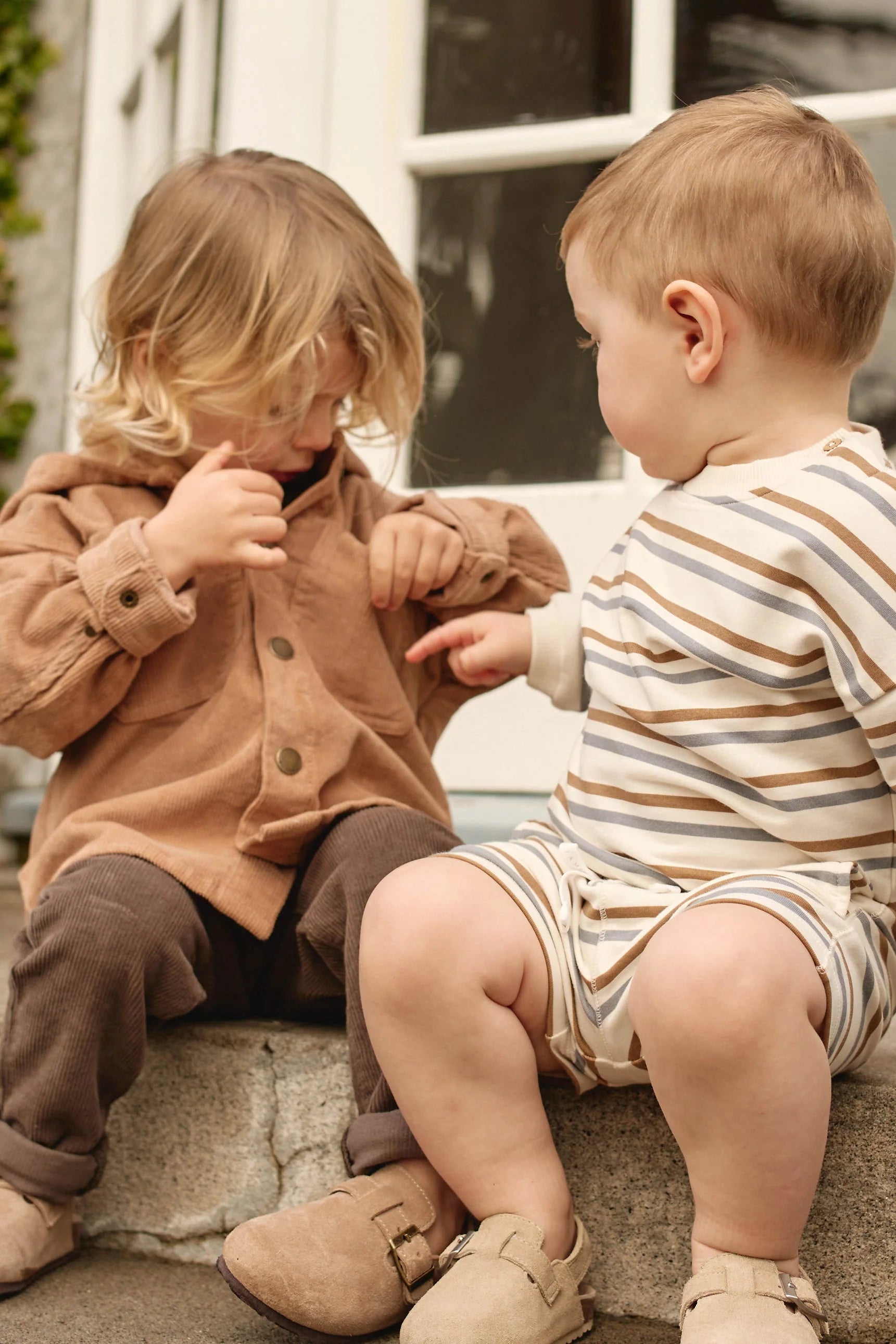 Crafted from 98% premium cotton and 2% elastane, the Blair Jacket in Tiger is the perfect blend of comfort, flexibility, and everyday style for your little one. Designed with a rich, earthy tone and made from high-quality cotton cord, this jacket is breathable yet warm—ideal for seasonal transitions.