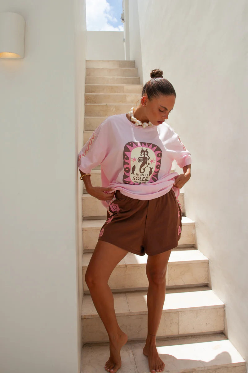 Sol Shorts – Brown with Pink Trim | Palm Collective